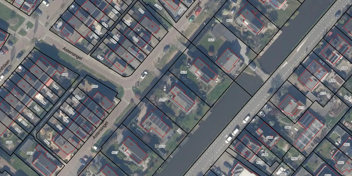 Het perceel waarop Astersingel 15 staat heeft een oppervlakte van 650 m². Dit is een groot perceel. De perceeloppervlakte wordt geregistreerd door het Kadaster. Gedetailleerde informatie over de maten van dit perceel kunt u vinden in het rapport Kadastrale kaart met maatvoering van Astersingel 15.