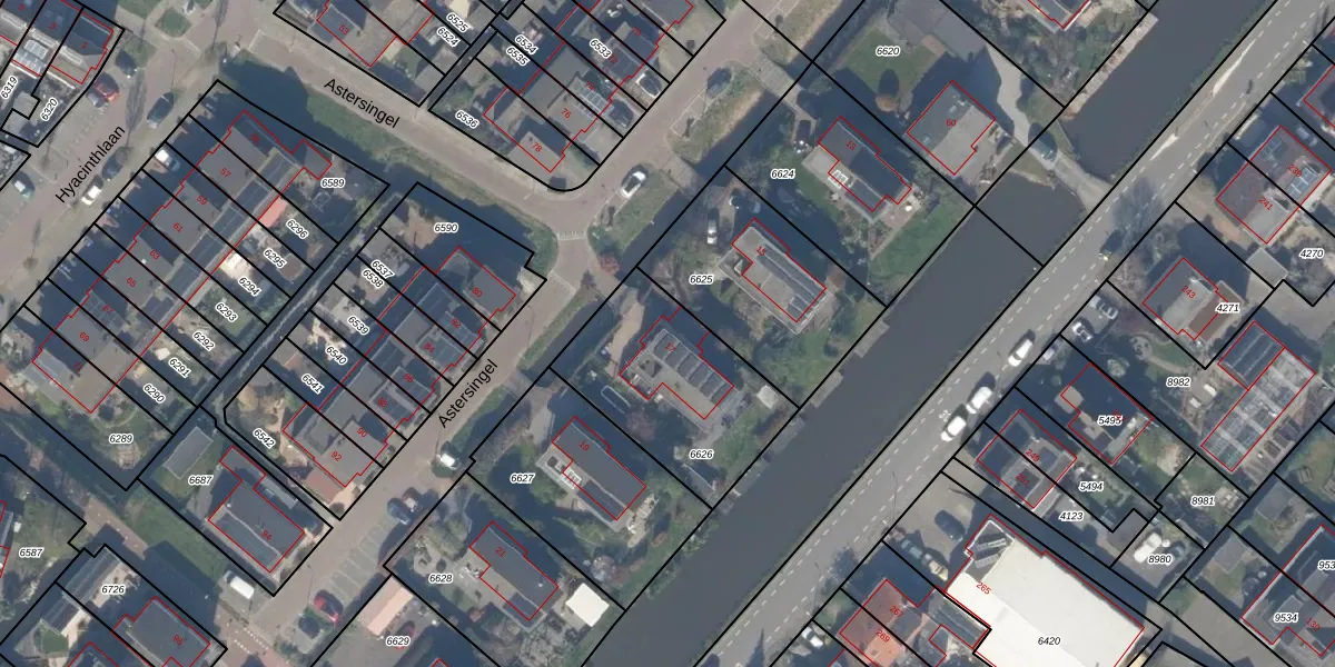 Gebruik de zoekbalk of klik op een perceel voor informatie over de adressen binnen dit perceel.