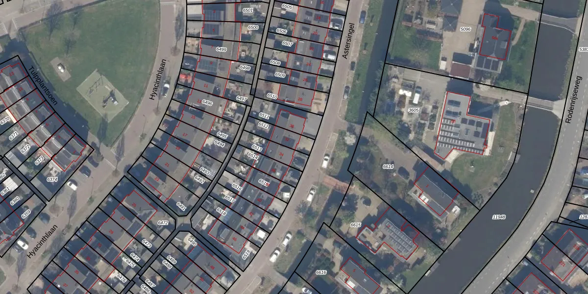 Gebruik de zoekbalk of klik op een perceel voor informatie over de adressen binnen dit perceel.