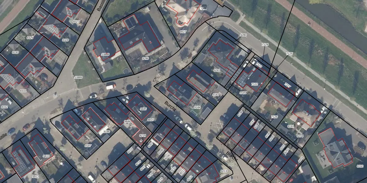 Het perceel waarop Bastille 21 staat heeft een oppervlakte van 395 m². Dit is een groot perceel. De perceeloppervlakte wordt geregistreerd door het Kadaster. Gedetailleerde informatie over de maten van dit perceel kunt u vinden in het rapport Kadastrale kaart met maatvoering van Bastille 21.