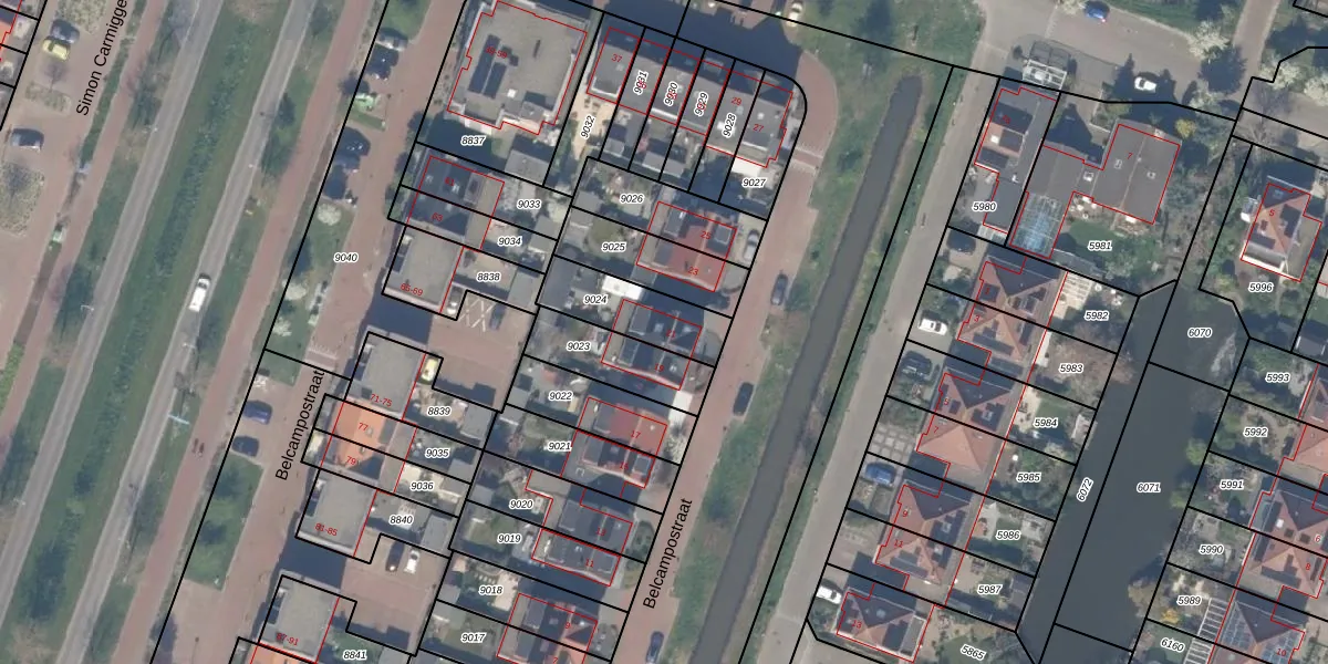Belcampostraat 21 is gelegen op kadastraal perceel BKL01B9024. Deze kadastrale aanduiding is uniek en wordt gebruikt door het Kadaster om eigendomsrechten en andere zakelijke rechten vast te leggen. Het perceel maakt onderdeel uit van de kadastrale gemeente Berkel en Rodenrijs.