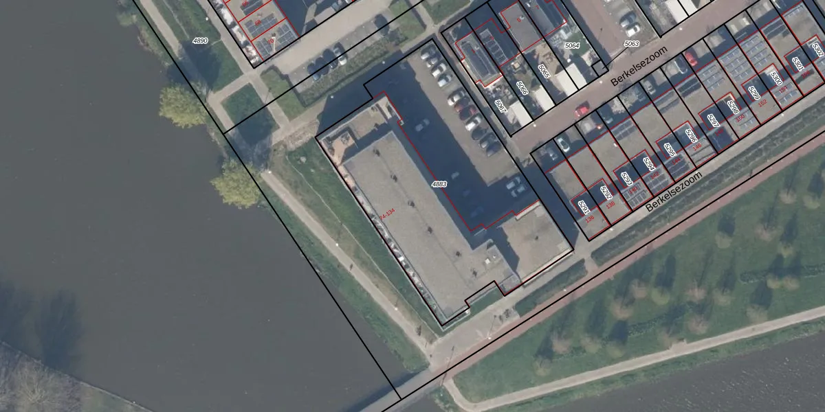 Het perceel waarop Berkelsezoom 114 staat heeft een oppervlakte van 2148 m². Dit is een zeer groot perceel. De perceeloppervlakte wordt geregistreerd door het Kadaster. Gedetailleerde informatie over de maten van dit perceel kunt u vinden in het rapport Kadastrale kaart met maatvoering van Berkelsezoom 114.