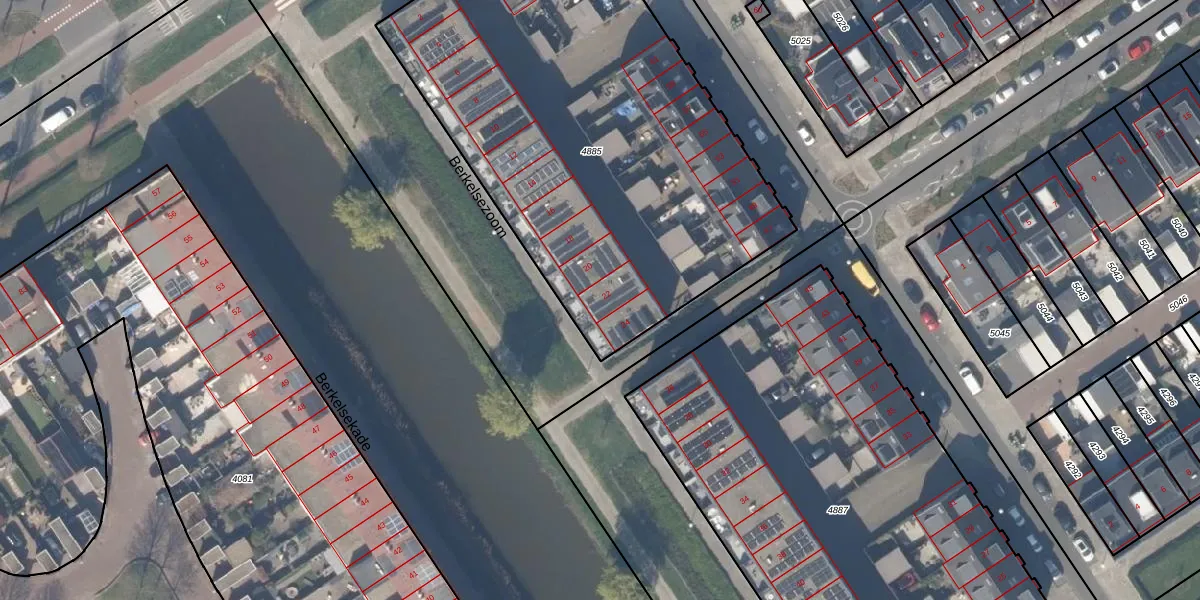 Het perceel waarop het adres ligt is BKL01-C-4885. De afkorting 'BKL01' staat voor kadastrale gemeente Berkel en Rodenrijs. De gemiddelde perceeloppervlakte in de kadastrale gemeente Berkel en Rodenrijs is 1314,82 m². Dit perceel is met zijn 2680 m² dus groter dan gemiddeld. Het grootste perceel in de kadastrale gemeente is 33,8 ha. Het kleinste perceel heeft een oppervlakte van 0 m². Er zijn 24 adressen aanwezig op het perceel. De huidige grenzen van het perceel zijn digitaal in de Basisregistratie Kadaster (BRK) geregistreerd op 07-04-2008.