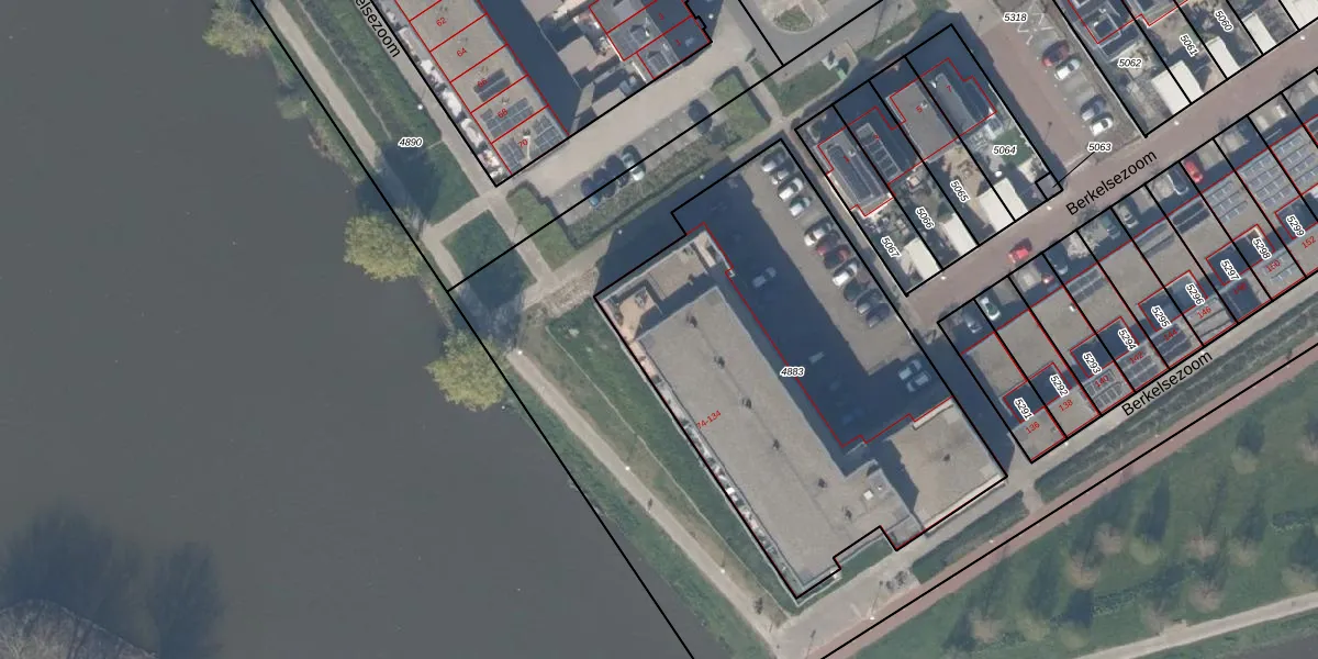 Het perceel waarop Berkelsezoom 84 staat heeft een oppervlakte van 2148 m². Dit is een zeer groot perceel. De perceeloppervlakte wordt geregistreerd door het Kadaster. Gedetailleerde informatie over de maten van dit perceel kunt u vinden in het rapport Kadastrale kaart met maatvoering van Berkelsezoom 84.