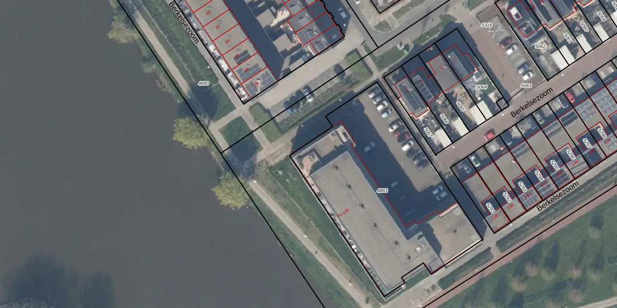 Het perceel waarop Berkelsezoom 86 staat heeft een oppervlakte van 2148 m². Dit is een zeer groot perceel. De perceeloppervlakte wordt geregistreerd door het Kadaster. Gedetailleerde informatie over de maten van dit perceel kunt u vinden in het rapport Kadastrale kaart met maatvoering van Berkelsezoom 86.