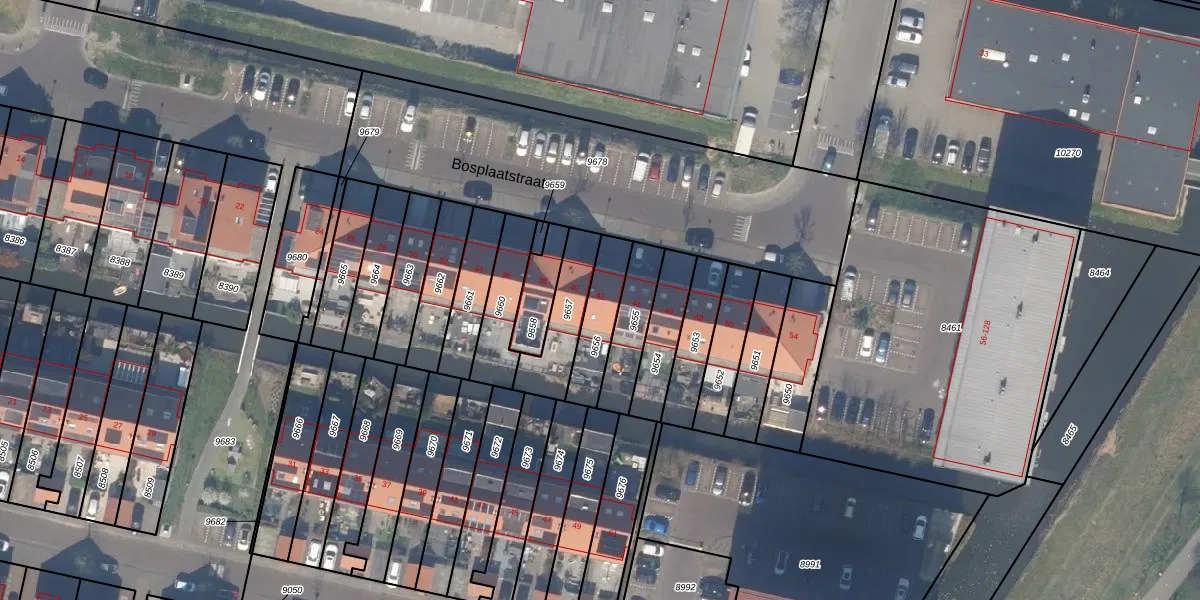 Het perceel waarop Bosplaatstraat 42 staat heeft een oppervlakte van 154 m². Dit is een middelgroot perceel. De perceeloppervlakte wordt geregistreerd door het Kadaster. Gedetailleerde informatie over de maten van dit perceel kunt u vinden in het rapport Kadastrale kaart met maatvoering van Bosplaatstraat 42.