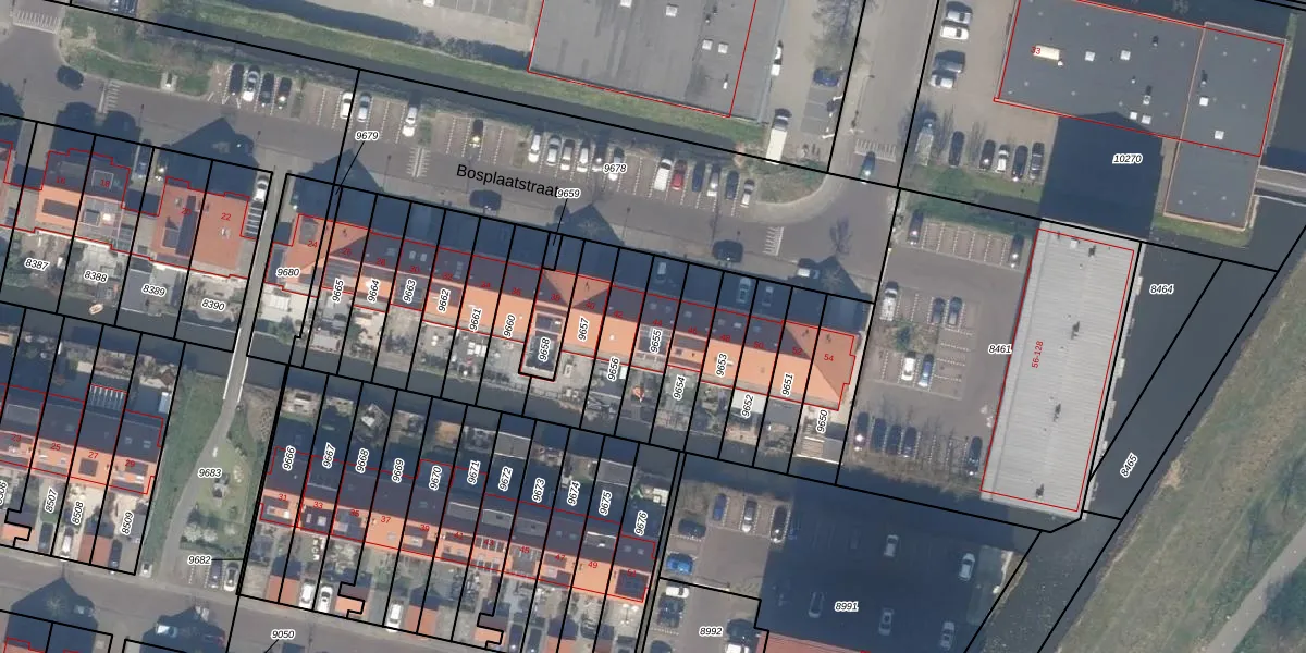 Het perceel waarop Bosplaatstraat 44 staat heeft een oppervlakte van 155 m². Dit is een middelgroot perceel. De perceeloppervlakte wordt geregistreerd door het Kadaster. Gedetailleerde informatie over de maten van dit perceel kunt u vinden in het rapport Kadastrale kaart met maatvoering van Bosplaatstraat 44.
