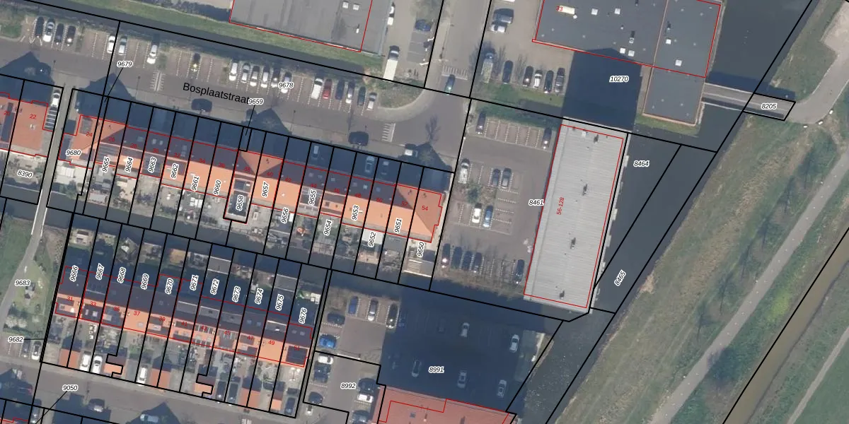Het perceel waarop Bosplaatstraat 54 staat heeft een oppervlakte van 215 m². Dit is een middelgroot perceel. De perceeloppervlakte wordt geregistreerd door het Kadaster. Gedetailleerde informatie over de maten van dit perceel kunt u vinden in het rapport Kadastrale kaart met maatvoering van Bosplaatstraat 54.