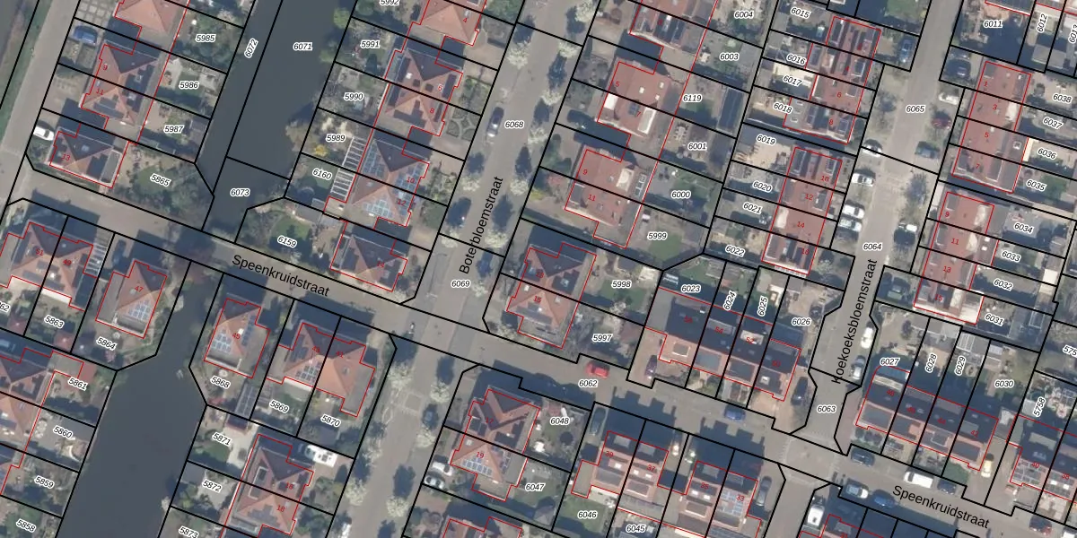 Gebruik de zoekbalk of klik op een perceel voor informatie over de adressen binnen dit perceel.