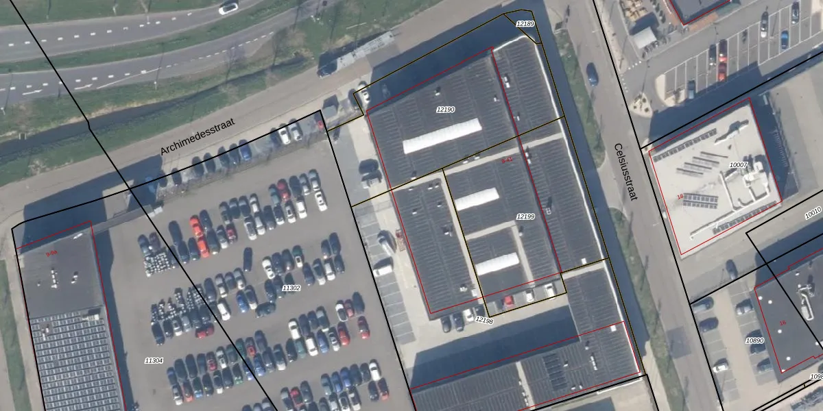 Het perceel waarop Celsiusstraat 25 staat heeft een oppervlakte van 2338 m². Dit is een zeer groot perceel. De perceeloppervlakte wordt geregistreerd door het Kadaster. Gedetailleerde informatie over de maten van dit perceel kunt u vinden in het rapport Kadastrale kaart met maatvoering van Celsiusstraat 25.