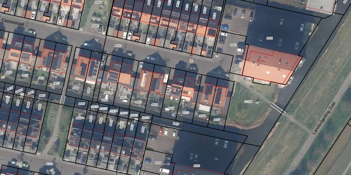 Het perceel waarop Ceresstraat 36 staat heeft een oppervlakte van 262 m². Dit is een middelgroot perceel. De perceeloppervlakte wordt geregistreerd door het Kadaster. Gedetailleerde informatie over de maten van dit perceel kunt u vinden in het rapport Kadastrale kaart met maatvoering van Ceresstraat 36.