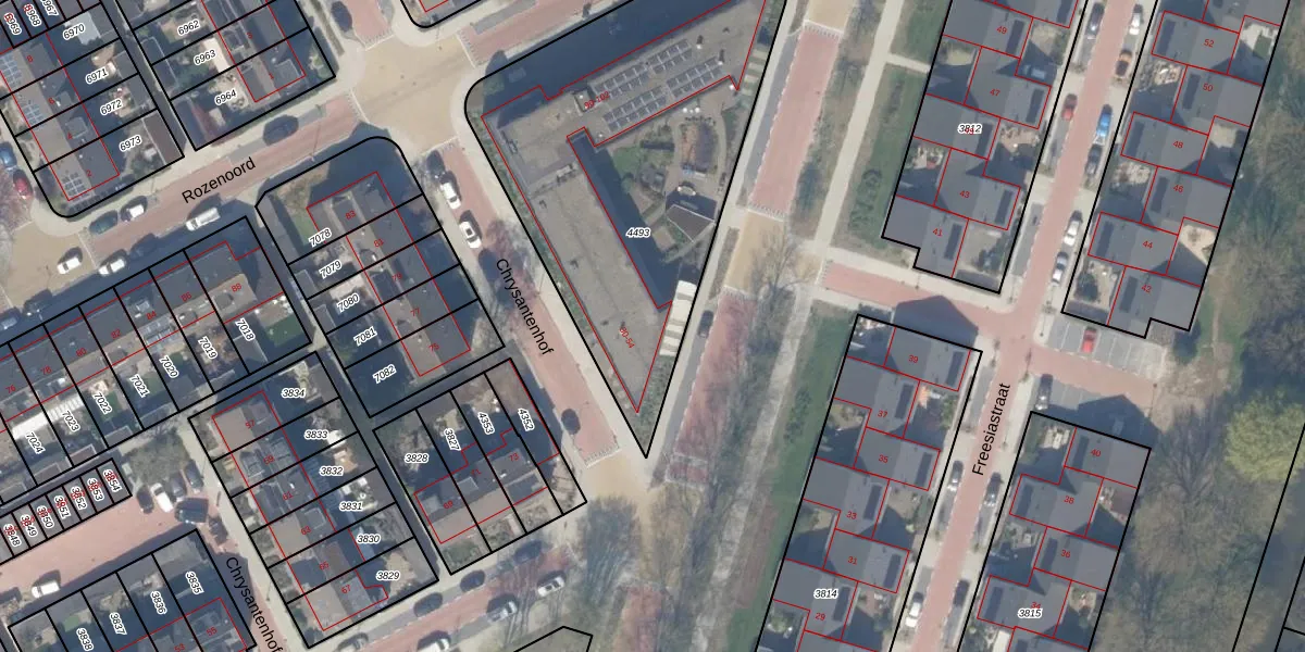 Chrysantenhof 30-b is gelegen op kadastraal perceel BKL01B4493. Deze kadastrale aanduiding is uniek en wordt gebruikt door het Kadaster om eigendomsrechten en andere zakelijke rechten vast te leggen. Het perceel maakt onderdeel uit van de kadastrale gemeente Berkel en Rodenrijs.