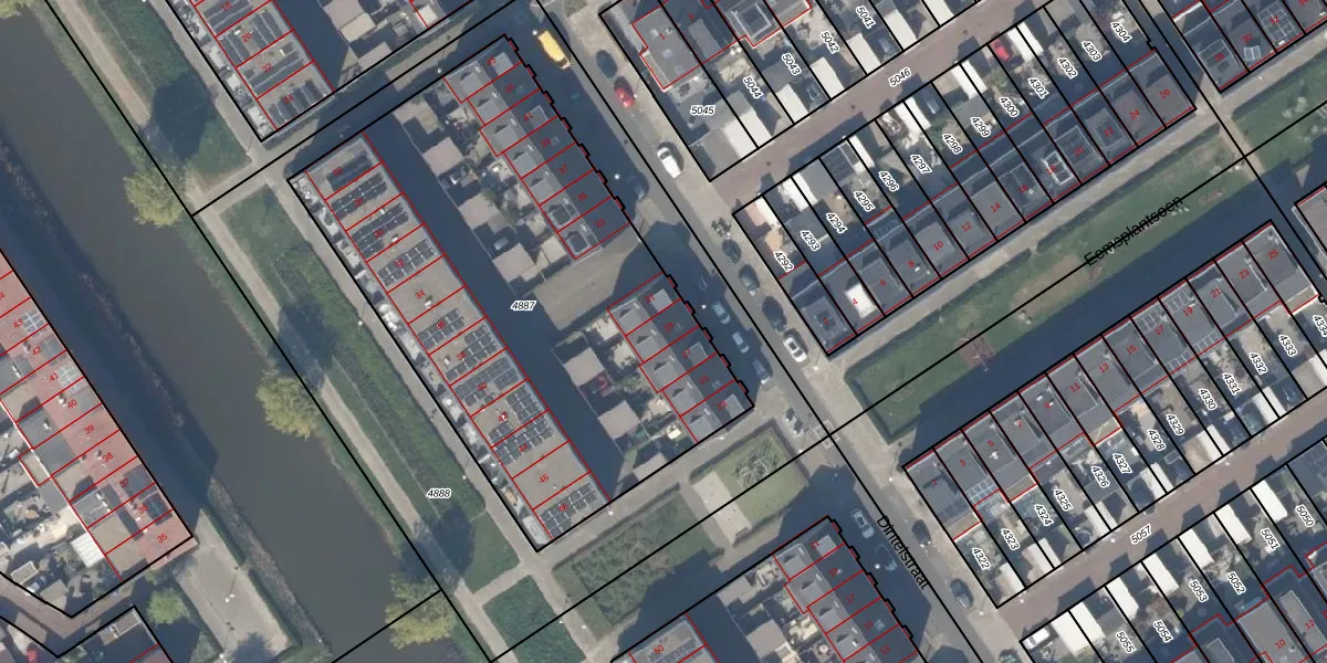 Het perceel waarop Dintelstraat 29 staat heeft een oppervlakte van 2670 m². Dit is een zeer groot perceel. De perceeloppervlakte wordt geregistreerd door het Kadaster. Gedetailleerde informatie over de maten van dit perceel kunt u vinden in het rapport Kadastrale kaart met maatvoering van Dintelstraat 29.
