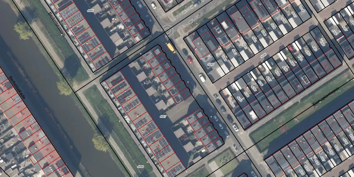 Het perceel waarop het adres ligt is BKL01-C-4887. De afkorting 'BKL01' staat voor kadastrale gemeente Berkel en Rodenrijs. Het perceel is met 2670 m² relatief groot. Het gemiddelde ligt in de kadastrale gemeente Berkel en Rodenrijs op 1320,6 m². De grootste perceeloppervlakte in de kadastrale gemeente is 33,8 ha. De kleinste oppervlakte bedraagt 0 m². Op het perceel liggen in totaal 24 adressen. De laatste wijziging in het de Basisregistratie Kadaster (BRK) was op 07-04-2008.