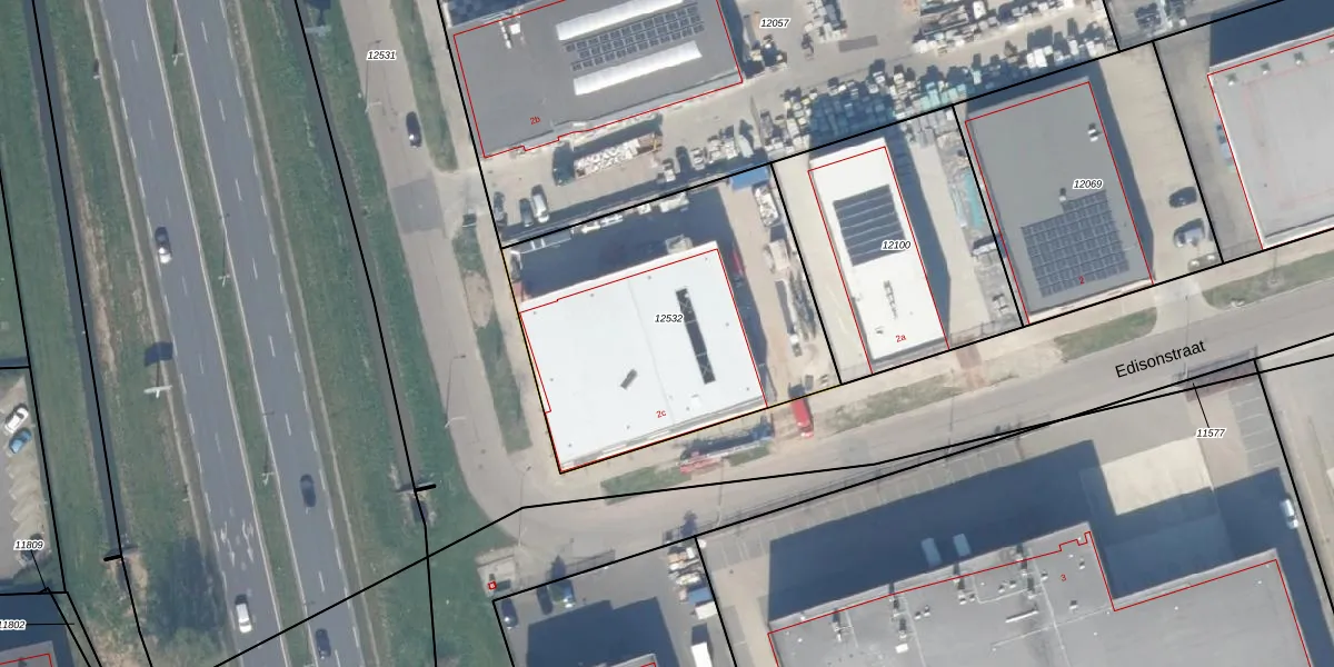 Het perceel waarop Edisonstraat 2-c staat heeft een oppervlakte van 1498 m². Dit is een zeer groot perceel. De perceeloppervlakte wordt geregistreerd door het Kadaster. Gedetailleerde informatie over de maten van dit perceel kunt u vinden in het rapport Kadastrale kaart met maatvoering van Edisonstraat 2-c.