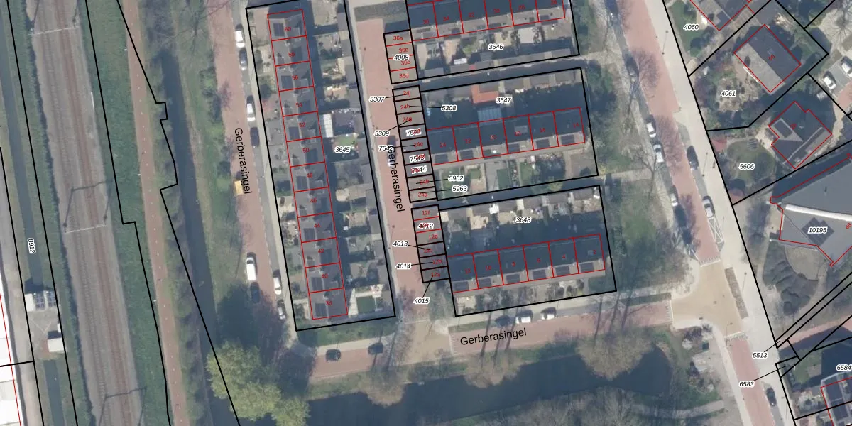 Het perceel waarop Gerberasingel 12-f staat heeft een oppervlakte van 55 m². Dit is een klein perceel. De perceeloppervlakte wordt geregistreerd door het Kadaster. Gedetailleerde informatie over de maten van dit perceel kunt u vinden in het rapport Kadastrale kaart met maatvoering van Gerberasingel 12-f.