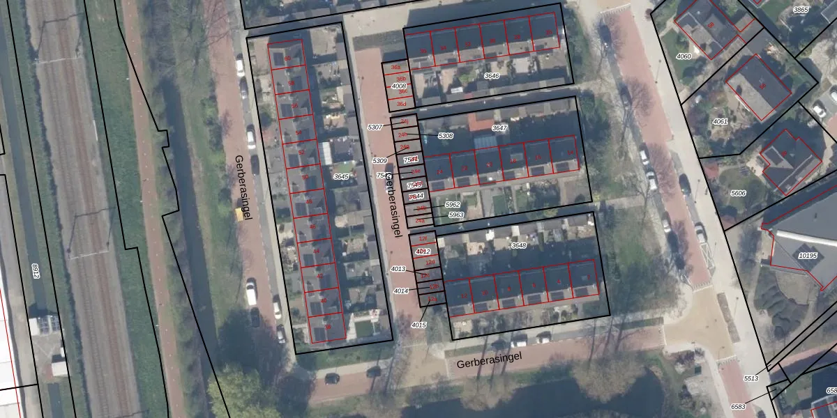 Het perceel waarop Gerberasingel 24-b staat heeft een oppervlakte van 19 m². Dit is een klein perceel. De perceeloppervlakte wordt geregistreerd door het Kadaster. Gedetailleerde informatie over de maten van dit perceel kunt u vinden in het rapport Kadastrale kaart met maatvoering van Gerberasingel 24-b.