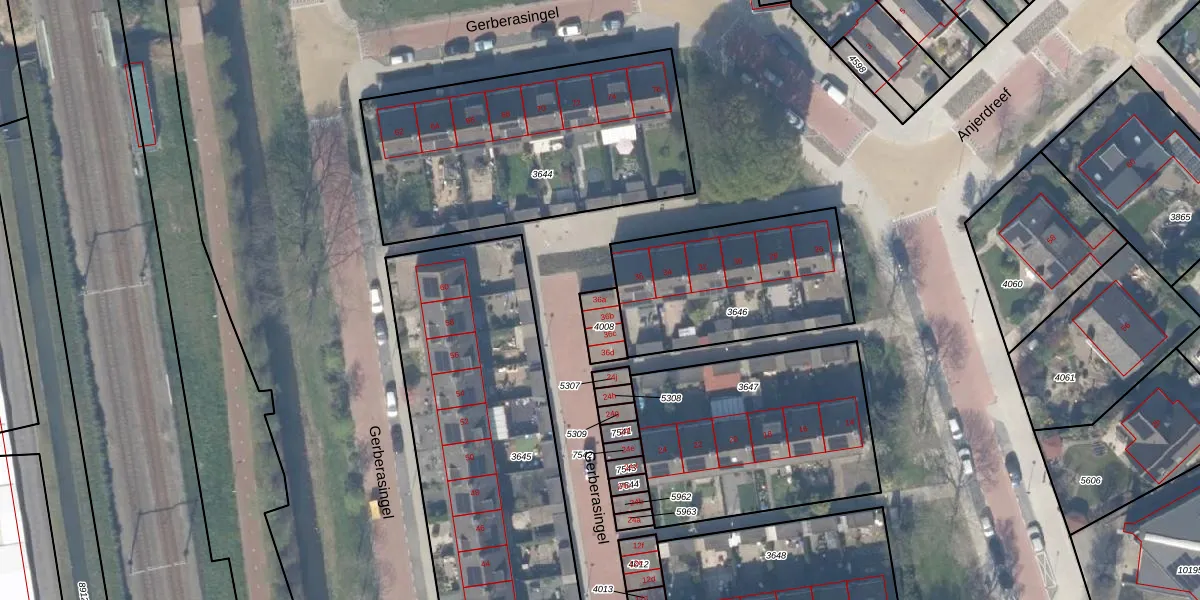 Het perceel waarop Gerberasingel 36-a staat heeft een oppervlakte van 75 m². Dit is een klein perceel. De perceeloppervlakte wordt geregistreerd door het Kadaster. Gedetailleerde informatie over de maten van dit perceel kunt u vinden in het rapport Kadastrale kaart met maatvoering van Gerberasingel 36-a.