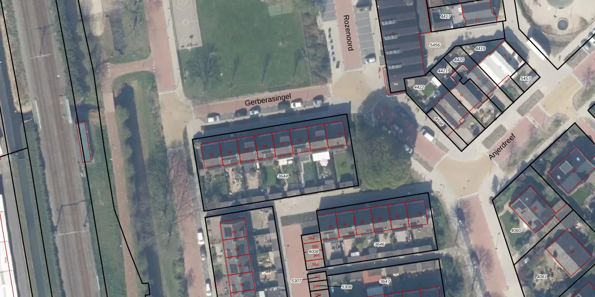 Gerberasingel 72 is gelegen op kadastraal perceel BKL01B3644. Deze kadastrale aanduiding is uniek en wordt gebruikt door het Kadaster om eigendomsrechten en andere zakelijke rechten vast te leggen. Het perceel maakt onderdeel uit van de kadastrale gemeente Berkel en Rodenrijs.