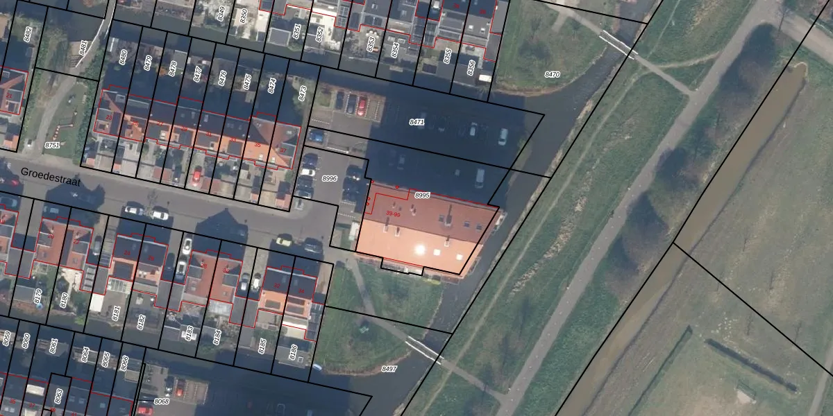 Het perceel waarop Groedestraat 67 staat heeft een oppervlakte van 910 m². Dit is een groot perceel. De perceeloppervlakte wordt geregistreerd door het Kadaster. Gedetailleerde informatie over de maten van dit perceel kunt u vinden in het rapport Kadastrale kaart met maatvoering van Groedestraat 67.