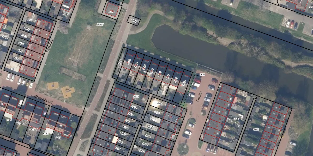 Het perceel waarop Grutto 39 staat heeft een oppervlakte van 118 m². Dit is een middelgroot perceel. De perceeloppervlakte wordt geregistreerd door het Kadaster. Gedetailleerde informatie over de maten van dit perceel kunt u vinden in het rapport Kadastrale kaart met maatvoering van Grutto 39.