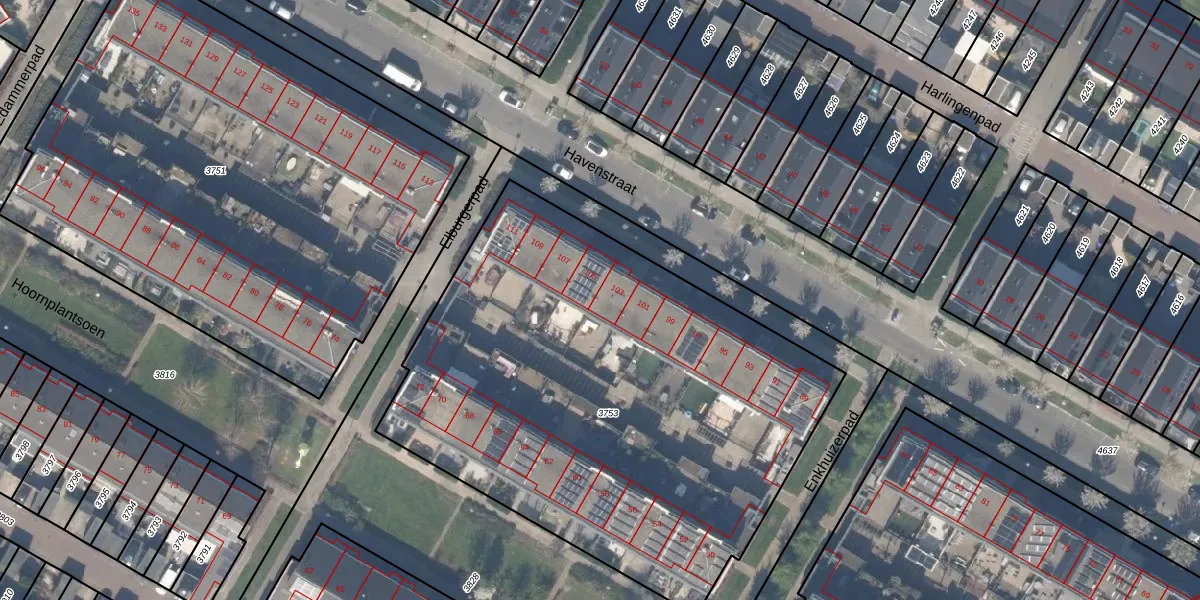 Havenstraat 103 is gelegen op kadastraal perceel BKL01C3753. Deze kadastrale aanduiding is uniek en wordt gebruikt door het Kadaster om eigendomsrechten en andere zakelijke rechten vast te leggen. Het perceel maakt onderdeel uit van de kadastrale gemeente Berkel en Rodenrijs.