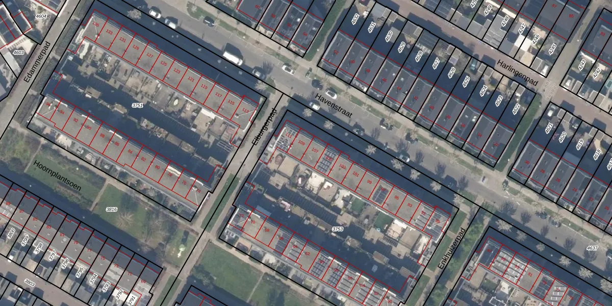 Het perceel waarop Havenstraat 107 staat heeft een oppervlakte van 3045 m². Dit is een zeer groot perceel. De perceeloppervlakte wordt geregistreerd door het Kadaster. Gedetailleerde informatie over de maten van dit perceel kunt u vinden in het rapport Kadastrale kaart met maatvoering van Havenstraat 107.