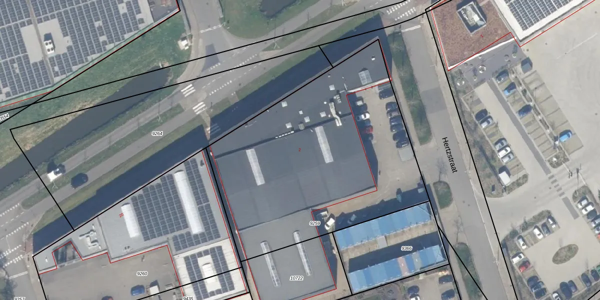 Het perceel waarop Hertzstraat 2 staat heeft een oppervlakte van 3159 m². Dit is een zeer groot perceel. De perceeloppervlakte wordt geregistreerd door het Kadaster. Gedetailleerde informatie over de maten van dit perceel kunt u vinden in het rapport Kadastrale kaart met maatvoering van Hertzstraat 2.