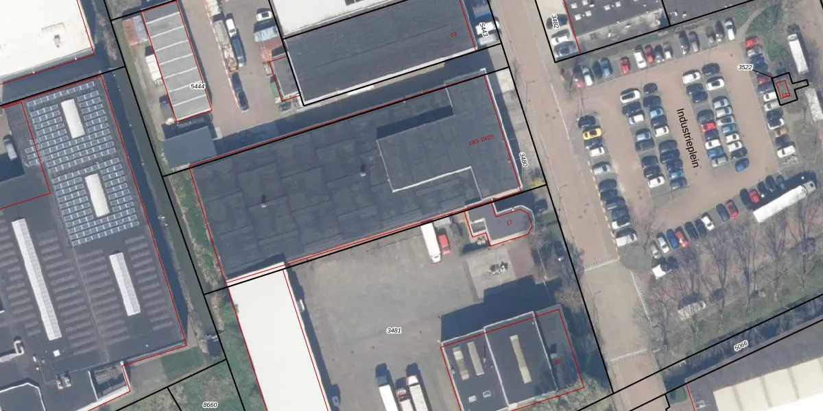 Het perceel waarop Industrieweg 19-5 staat heeft een oppervlakte van 2645 m². Dit is een zeer groot perceel. De perceeloppervlakte wordt geregistreerd door het Kadaster. Gedetailleerde informatie over de maten van dit perceel kunt u vinden in het rapport Kadastrale kaart met maatvoering van Industrieweg 19-5.