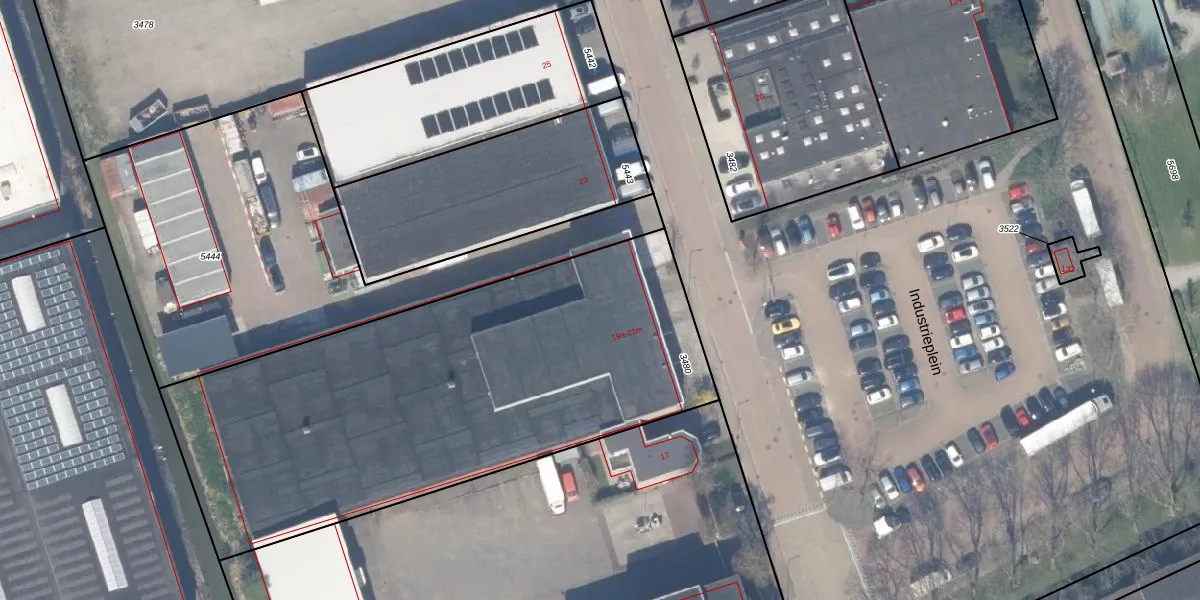 Het perceel waarop Industrieweg 21-a staat heeft een oppervlakte van 2645 m². Dit is een zeer groot perceel. De perceeloppervlakte wordt geregistreerd door het Kadaster. Gedetailleerde informatie over de maten van dit perceel kunt u vinden in het rapport Kadastrale kaart met maatvoering van Industrieweg 21-a.