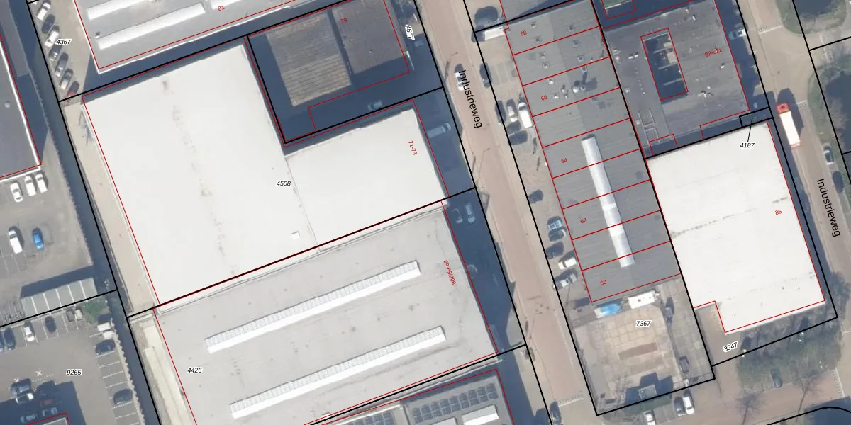 Het perceel waarop Industrieweg 69-24 staat heeft een oppervlakte van 3399 m². Dit is een zeer groot perceel. De perceeloppervlakte wordt geregistreerd door het Kadaster. Gedetailleerde informatie over de maten van dit perceel kunt u vinden in het rapport Kadastrale kaart met maatvoering van Industrieweg 69-24.