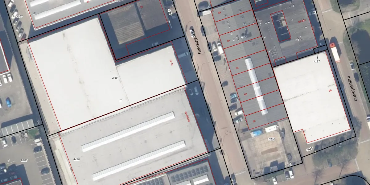 Het perceel waarop Industrieweg 69-28 staat heeft een oppervlakte van 3399 m². Dit is een zeer groot perceel. De perceeloppervlakte wordt geregistreerd door het Kadaster. Gedetailleerde informatie over de maten van dit perceel kunt u vinden in het rapport Kadastrale kaart met maatvoering van Industrieweg 69-28.