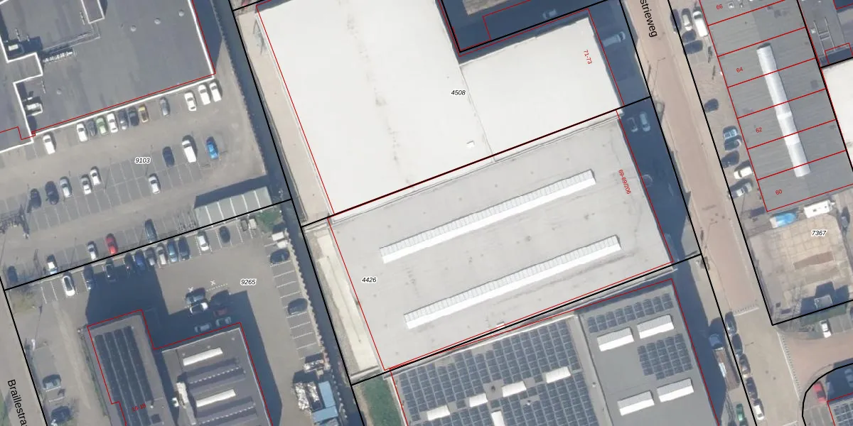 Industrieweg 69-39 is gelegen op kadastraal perceel BKL01B4426. Deze kadastrale aanduiding is uniek en wordt gebruikt door het Kadaster om eigendomsrechten en andere zakelijke rechten vast te leggen. Het perceel maakt onderdeel uit van de kadastrale gemeente Berkel en Rodenrijs.