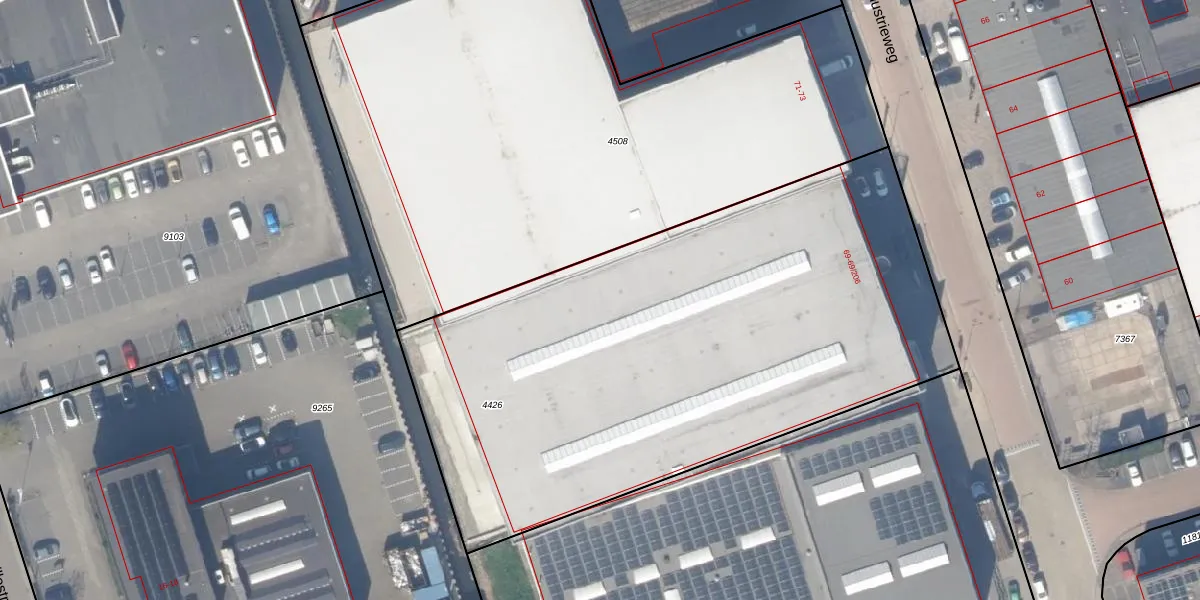 Industrieweg 69-41 is gelegen op kadastraal perceel BKL01B4426. Deze kadastrale aanduiding is uniek en wordt gebruikt door het Kadaster om eigendomsrechten en andere zakelijke rechten vast te leggen. Het perceel maakt onderdeel uit van de kadastrale gemeente Berkel en Rodenrijs.
