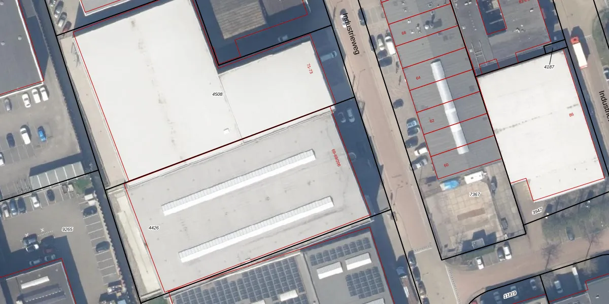 Het perceel waarop Industrieweg 69-84 staat heeft een oppervlakte van 3399 m². Dit is een zeer groot perceel. De perceeloppervlakte wordt geregistreerd door het Kadaster. Gedetailleerde informatie over de maten van dit perceel kunt u vinden in het rapport Kadastrale kaart met maatvoering van Industrieweg 69-84.