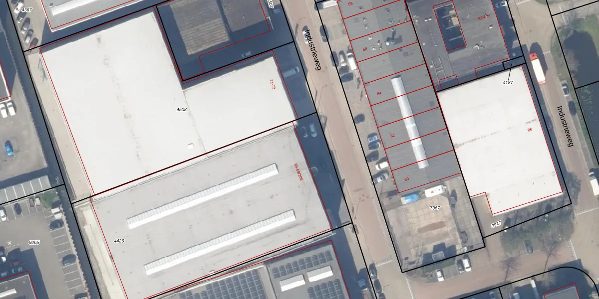 Het perceel waarop Industrieweg 69-94 staat heeft een oppervlakte van 3399 m². Dit is een zeer groot perceel. De perceeloppervlakte wordt geregistreerd door het Kadaster. Gedetailleerde informatie over de maten van dit perceel kunt u vinden in het rapport Kadastrale kaart met maatvoering van Industrieweg 69-94.