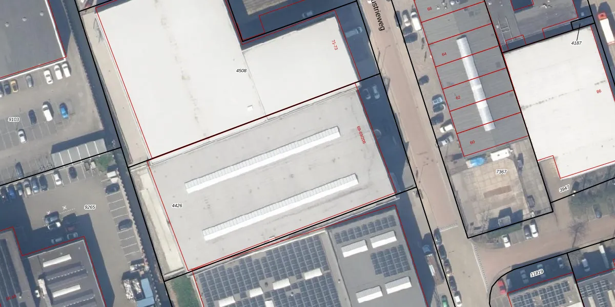 Het perceel waarop Industrieweg 69-114 staat heeft een oppervlakte van 3399 m². Dit is een zeer groot perceel. De perceeloppervlakte wordt geregistreerd door het Kadaster. Gedetailleerde informatie over de maten van dit perceel kunt u vinden in het rapport Kadastrale kaart met maatvoering van Industrieweg 69-114.
