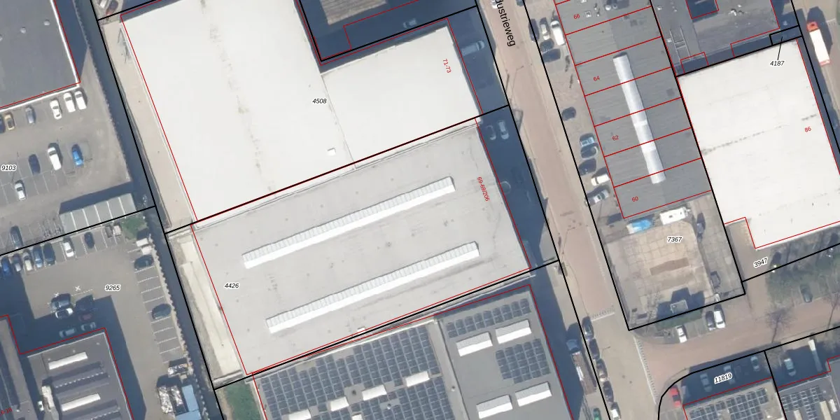 Industrieweg 69-115 is gelegen op kadastraal perceel BKL01B4426. Deze kadastrale aanduiding is uniek en wordt gebruikt door het Kadaster om eigendomsrechten en andere zakelijke rechten vast te leggen. Het perceel maakt onderdeel uit van de kadastrale gemeente Berkel en Rodenrijs.