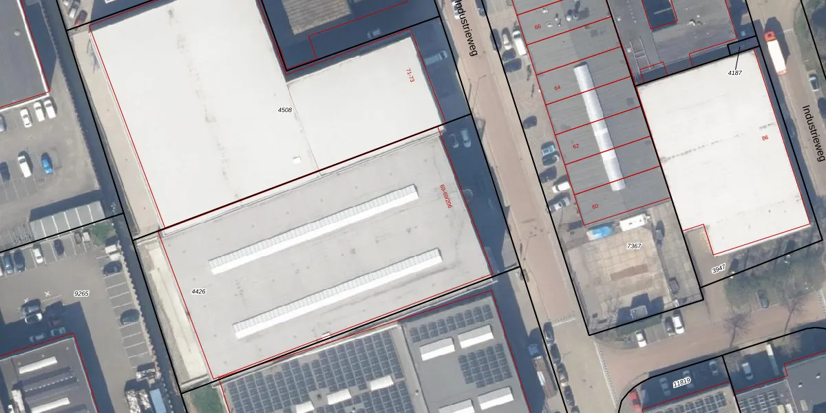 Industrieweg 69-118 is gelegen op kadastraal perceel BKL01B4426. Deze kadastrale aanduiding is uniek en wordt gebruikt door het Kadaster om eigendomsrechten en andere zakelijke rechten vast te leggen. Het perceel maakt onderdeel uit van de kadastrale gemeente Berkel en Rodenrijs.