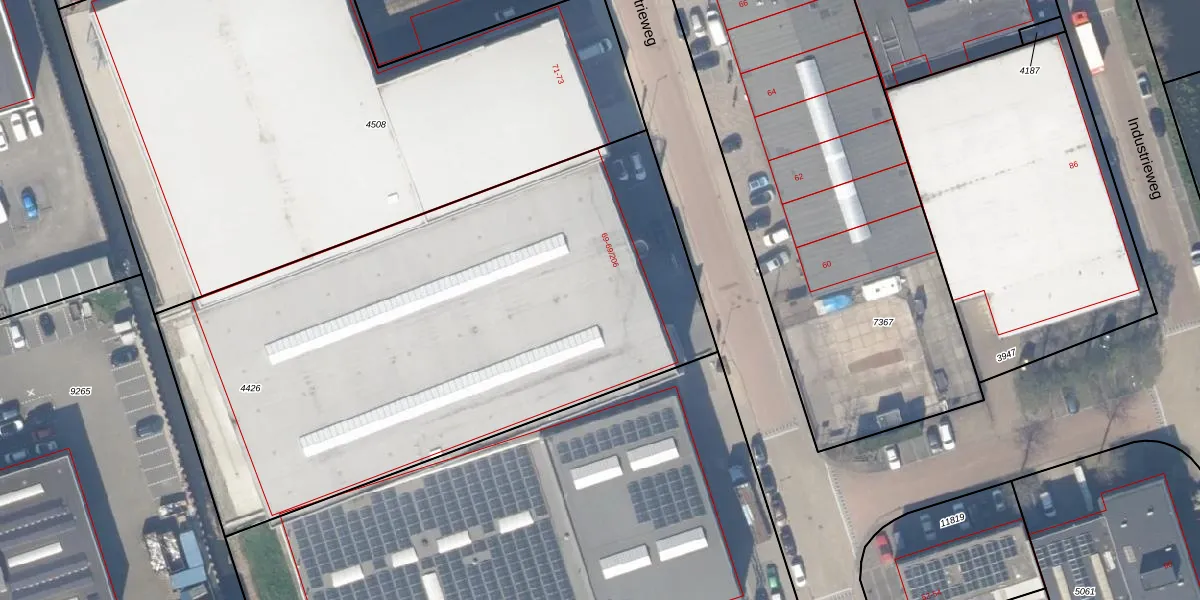 Het perceel waarop Industrieweg 69-148 staat heeft een oppervlakte van 3399 m². Dit is een zeer groot perceel. De perceeloppervlakte wordt geregistreerd door het Kadaster. Gedetailleerde informatie over de maten van dit perceel kunt u vinden in het rapport Kadastrale kaart met maatvoering van Industrieweg 69-148.