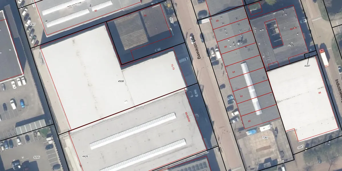 Het perceel waarop Industrieweg 71-2 staat heeft een oppervlakte van 3517 m². Dit is een zeer groot perceel. De perceeloppervlakte wordt geregistreerd door het Kadaster. Gedetailleerde informatie over de maten van dit perceel kunt u vinden in het rapport Kadastrale kaart met maatvoering van Industrieweg 71-2.