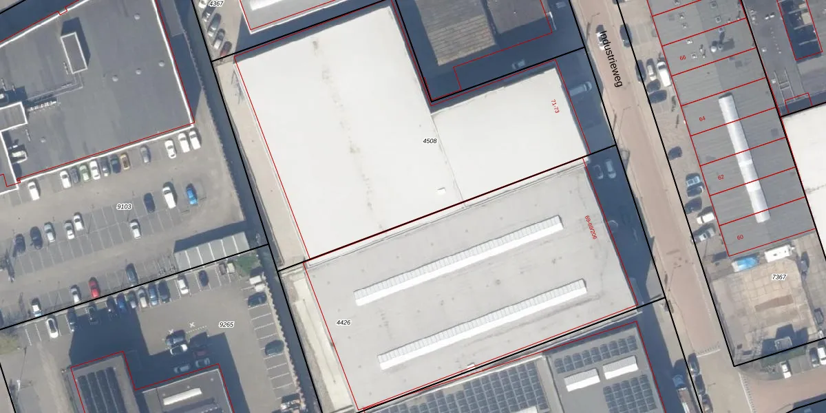 Het perceel waarop Industrieweg 71-9 staat heeft een oppervlakte van 3517 m². Dit is een zeer groot perceel. De perceeloppervlakte wordt geregistreerd door het Kadaster. Gedetailleerde informatie over de maten van dit perceel kunt u vinden in het rapport Kadastrale kaart met maatvoering van Industrieweg 71-9.