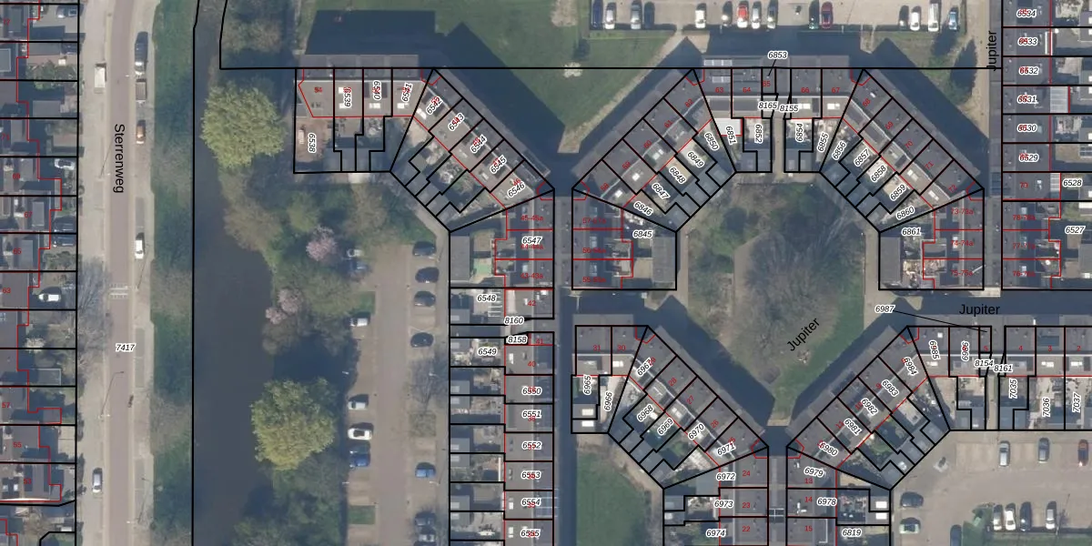 Het perceel waarop Jupiter 43 staat heeft een oppervlakte van 272 m². Dit is een middelgroot perceel. De perceeloppervlakte wordt geregistreerd door het Kadaster. Gedetailleerde informatie over de maten van dit perceel kunt u vinden in het rapport Kadastrale kaart met maatvoering van Jupiter 43.