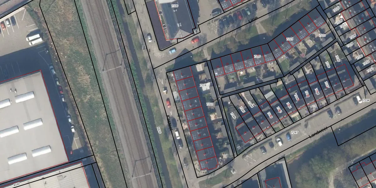 Het perceel waarop Kasteel 5 staat heeft een oppervlakte van 1259 m². Dit is een zeer groot perceel. De perceeloppervlakte wordt geregistreerd door het Kadaster. Gedetailleerde informatie over de maten van dit perceel kunt u vinden in het rapport Kadastrale kaart met maatvoering van Kasteel 5.
