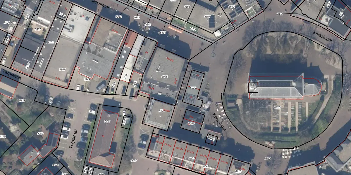 Het perceel waarop Kerksingel 27 staat heeft een oppervlakte van 613 m². Dit is een groot perceel. De perceeloppervlakte wordt geregistreerd door het Kadaster. Gedetailleerde informatie over de maten van dit perceel kunt u vinden in het rapport Kadastrale kaart met maatvoering van Kerksingel 27.