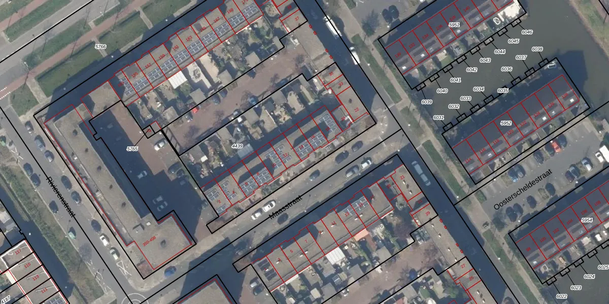 Het perceel waarop Maasstraat 14 staat heeft een oppervlakte van 4505 m². Dit is een zeer groot perceel. De perceeloppervlakte wordt geregistreerd door het Kadaster. Gedetailleerde informatie over de maten van dit perceel kunt u vinden in het rapport Kadastrale kaart met maatvoering van Maasstraat 14.