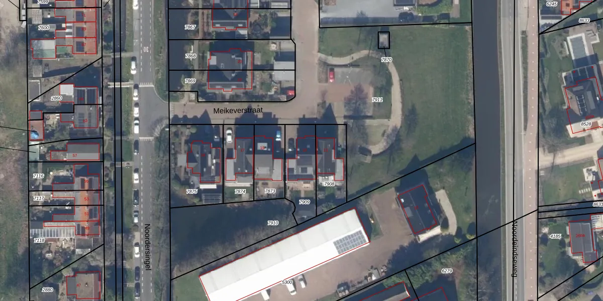 Het perceel waarop Meikeverstraat 13 staat heeft een oppervlakte van 308 m². Dit is een groot perceel. De perceeloppervlakte wordt geregistreerd door het Kadaster. Gedetailleerde informatie over de maten van dit perceel kunt u vinden in het rapport Kadastrale kaart met maatvoering van Meikeverstraat 13.