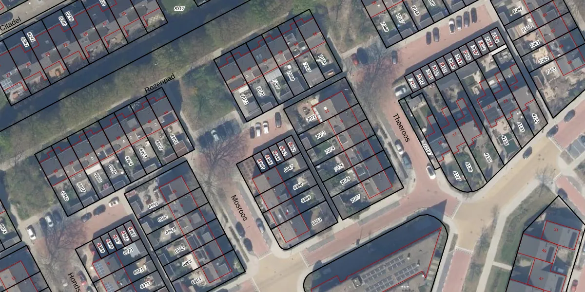 Het perceel waarop Mosroos 18 staat heeft een oppervlakte van 21 m². Dit is een klein perceel. De perceeloppervlakte wordt geregistreerd door het Kadaster. Gedetailleerde informatie over de maten van dit perceel kunt u vinden in het rapport Kadastrale kaart met maatvoering van Mosroos 18.
