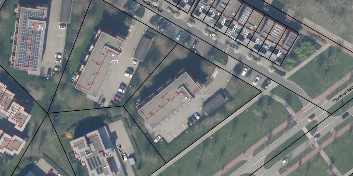 Het perceel waarop Muiderstraat 121 staat heeft een oppervlakte van 2654 m². Dit is een zeer groot perceel. De perceeloppervlakte wordt geregistreerd door het Kadaster. Gedetailleerde informatie over de maten van dit perceel kunt u vinden in het rapport Kadastrale kaart met maatvoering van Muiderstraat 121.