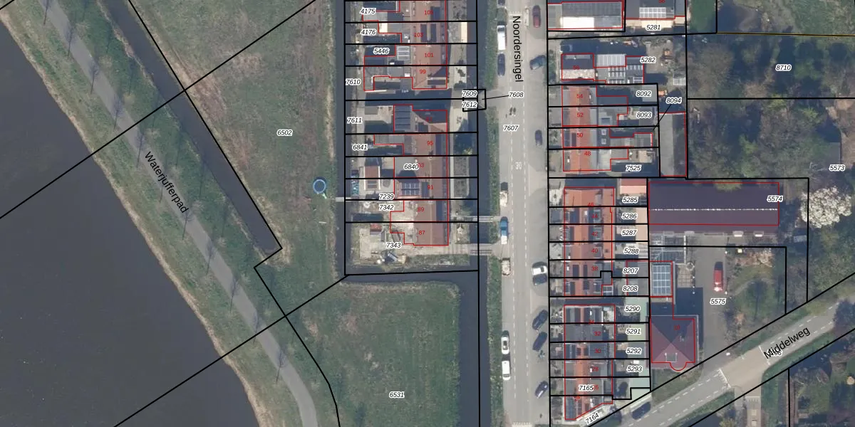 Gebruik de zoekbalk of klik op een perceel voor informatie over de adressen binnen dit perceel.